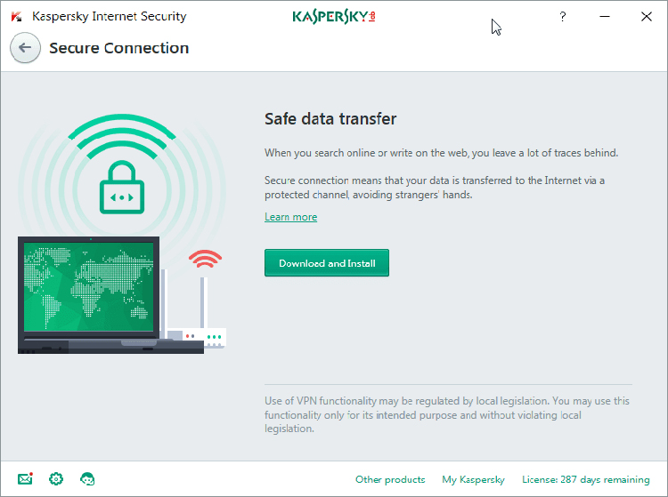 Nếu bạn đang sử dụng Kaspersky Secure Connection tại Belarus, Oman, Pakistan, Qatar, Iran, UAE, Ả Rập Saudi, Hồng Kông hoặc Trung Quốc, vui lòng thông báo rằng việc sử dụng công nghệ VPN hoặc bất kỳ yếu tố nào của công nghệ VPN có trong Kaspersky Secure Connection là tuân theo luật pháp và quy định của địa phương. Vui lòng đảm bảo việc sử dụng Kaspersky Secure Connection tuân thủ mục đích sử dụng cũng như luật pháp và quy định của địa phương.