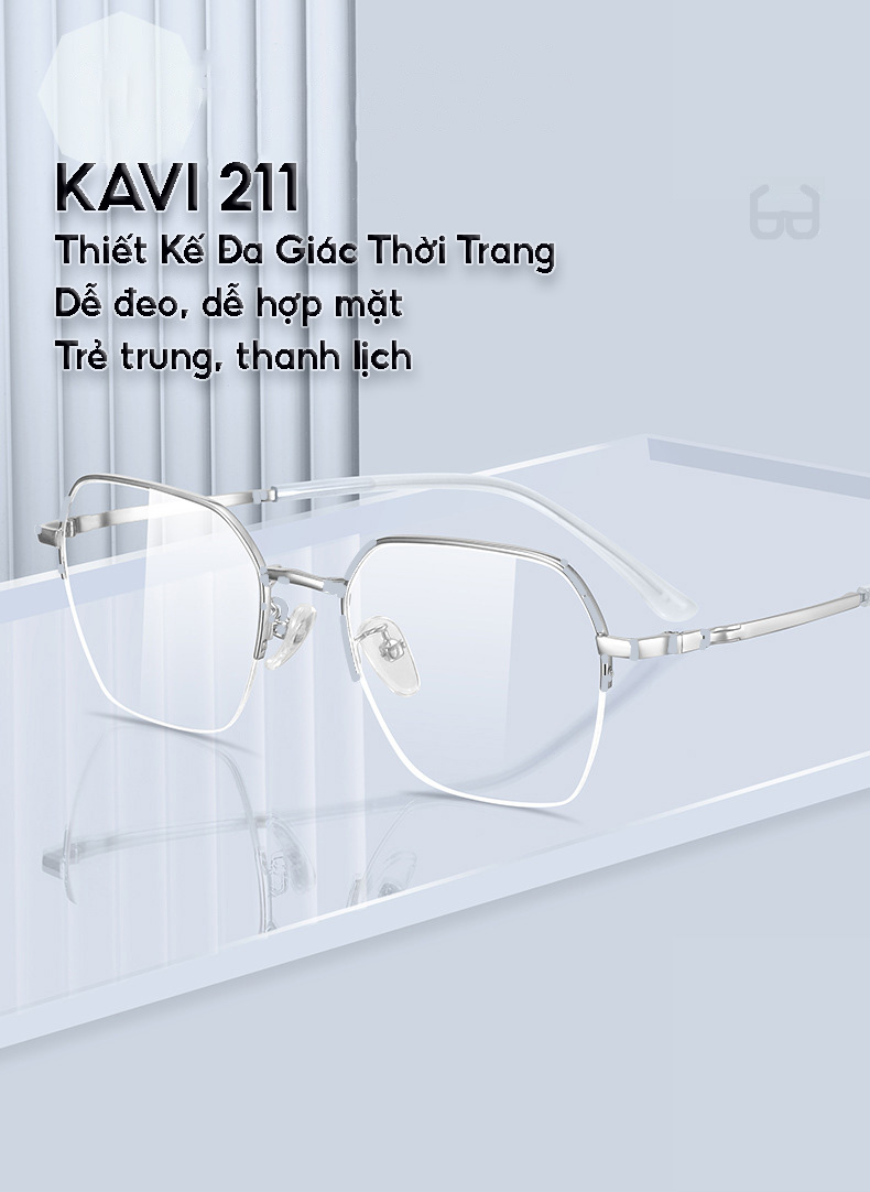KAVI 211 - Kính Đổi Màu Khi Ra Nắng Gọng Kim Loại Nửa Viền Cao Cấp Dáng Lục Giác Đặc Điểm Nổi Bật Kính KAVI Kavi211 • Mắt kính cao cấp bằng hợp chất của