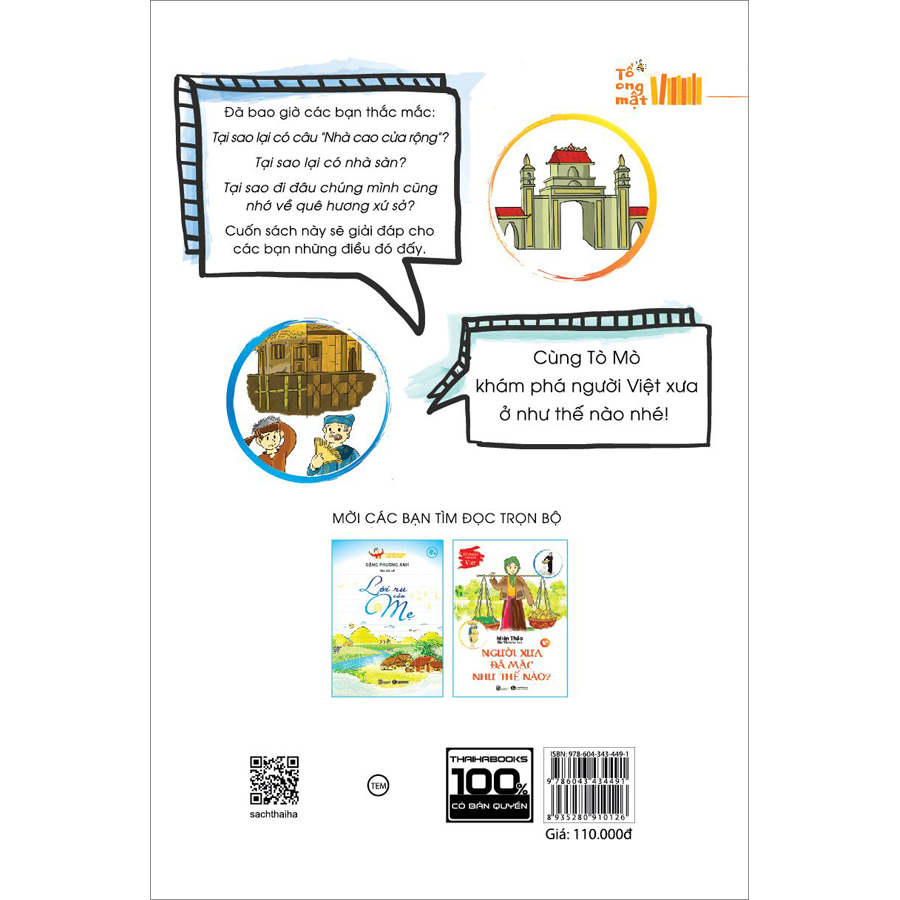 Với cuốn sách này, các bạn nhỏ sẽ được tìm hiểu khám phá những điều tuyệt vời về văn hóa nhà ở, làng xóm của dân tộc mình, được nghe kể câu chuyện về nguồn gốc của những ngôi nhà sàn, nhà nền đất, nhà thuyền, được tìm hiểu về phong tục truyền thống trong quan niệm làm nhà của người xưa. Chắc hẳn các bạn sẽ rất ngạc nhiên khi biết chuyện nhà ở chưa bao giờ là chuyện đơn giản, phía sau đó là những câu chuyện và những giá trị văn hóa mà bao đời cha ông ta gìn giữ và phát triển. Mỗi phong tục đều thể hiện rất rõ con người đã ứng phó như thế nào với môi trường tự nhiên xung quanh. Sau đó là con người đã thích nghi ra sao với điều kiện lao động sản xuất và sinh sống.