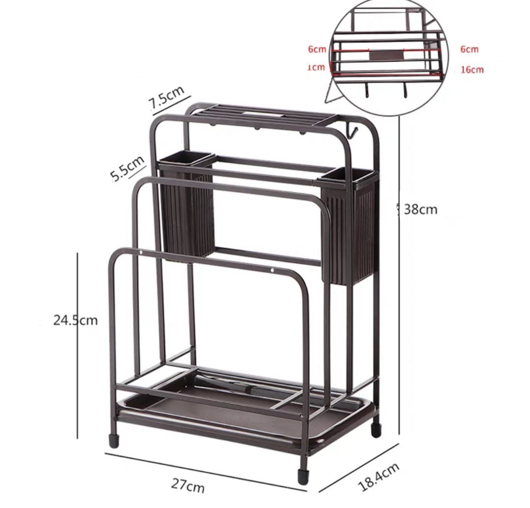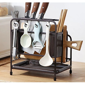 Giá Kệ Để Dao Thớt Ống Đũa Đa Năng Thép Đen Cao Cấp Chống Gỉ