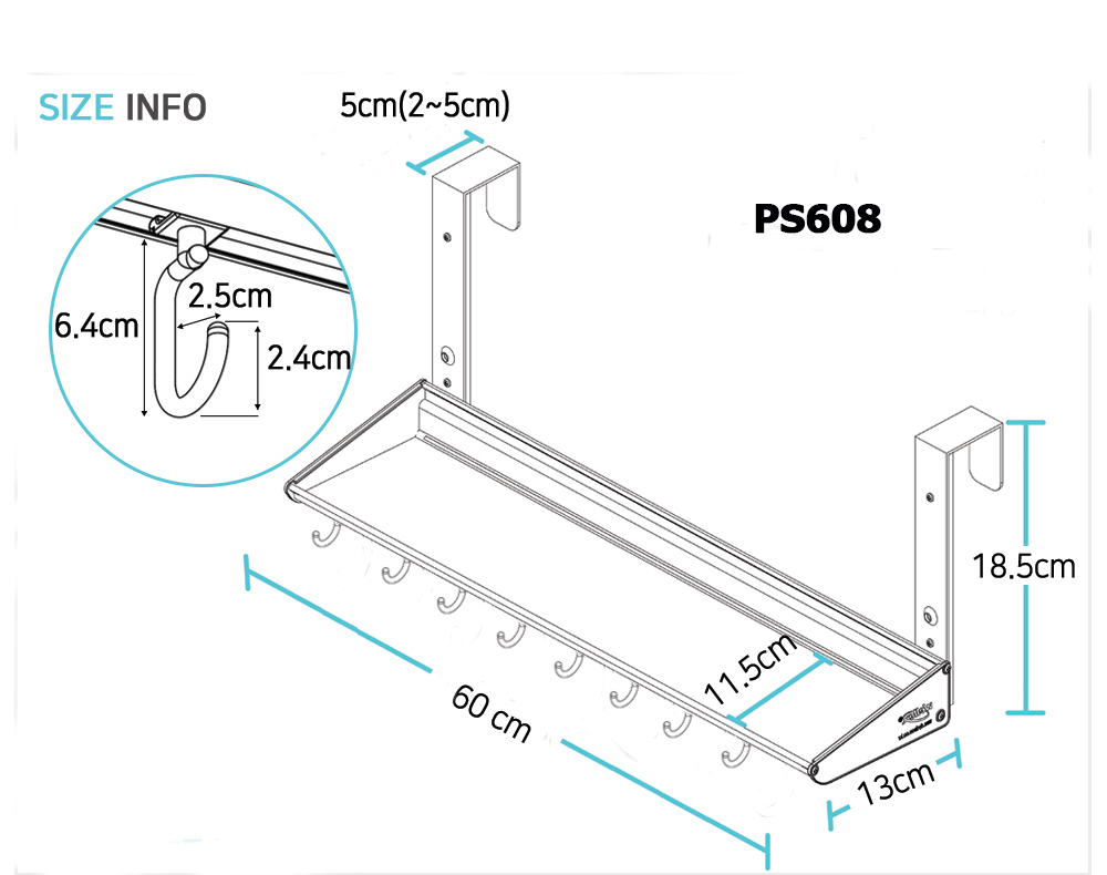 - Model: PS608: Kệ để đồ 1 tầng + móc treo đồ - Vật liệu: Nhôm, polycarbonate, inox - Kích thước: 600x 130mm - Đặc tính sản phẩm: Có thể di chuyển vị trí kệ