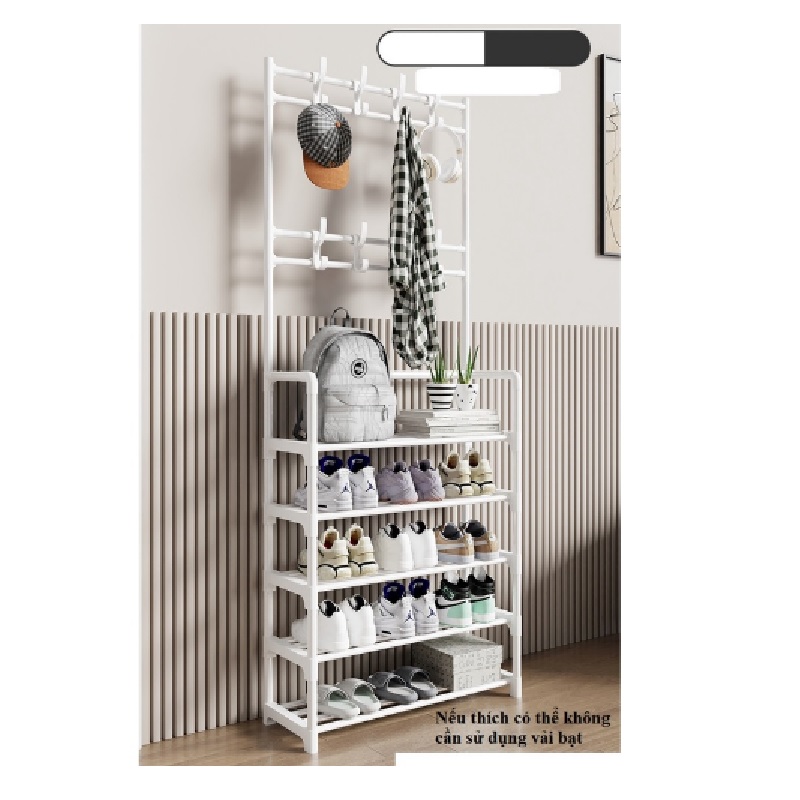 TÍNH NĂNG của Kệ để giày dép đa năng 5 tầng có móc treo: – Kệ giày giúp bạn lưu trữ và quản lý giày, dép một cách gọn gàng, ngăn nắp, giữ form giày, dép luôn đẹp như mới. – Kiểu dáng chắc chắn, nhỏ gọn giúp tiết kiệm được tối đa diện tích nhà bạn. – Có thể dùng làm kệ để sách báo, cặp túi, gấu bông cho bé… – Thiết kế cơ động, dễ dàng để lắp hoặc tháo rời. – Chất liệu cao cấp , bền đẹp – Có giá để đồ bên trên rất tiện lợi – Mẫu mã đẹp, phù hợp cho trong mọi không gian nội thất nhà bạn.