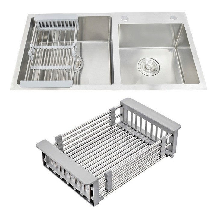 Kệ gác bồn rửa chán có thiết kế đặc biệt, thông minh và tiện dụng, có thể thay đổi kích thước chiều dài nên phù hợp với hầu hết các loại bồn rửa: Kích thước