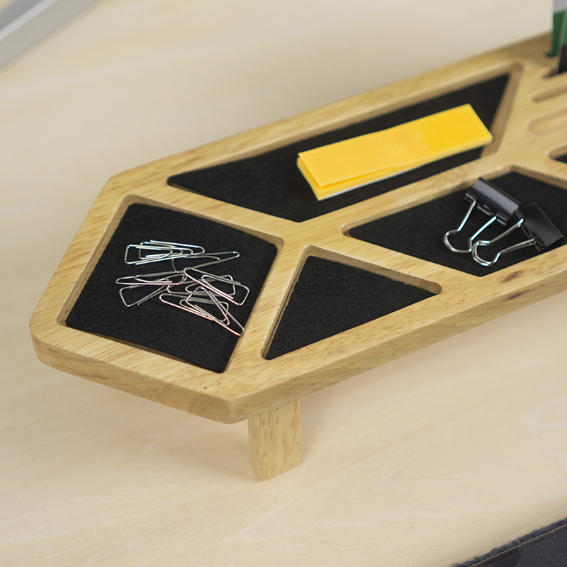 - Công năng: Là mẫu kệ/khay để đồ dùng văn phòng trên bàn làm việc giúp tiết kiệm và decor không gian làm việc.
