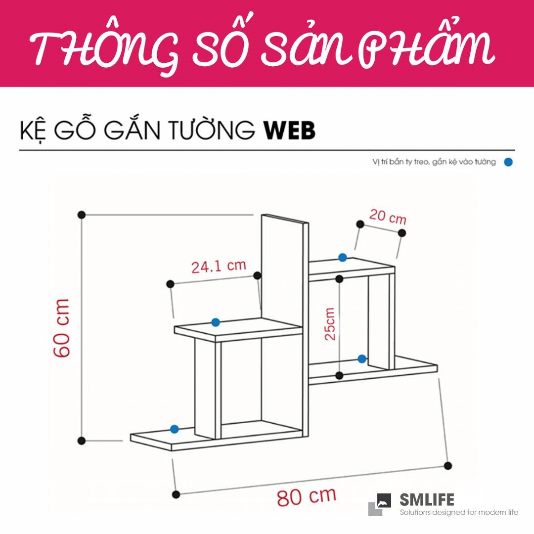 Mua tại TiktokMang đậm phong cách nội thất đơn giản, kệ gỗ trang trí gắn tường Web là một sự bổ sung hoàn hảo cho căn hộ hay văn phòng của bạn. Kệ gỗ Web được thiết kế theo phong cách đơn giản, hiện đại giúp bạn thoải mái trang trí sách hay các vật dụng trang trí an toàn. Sử dụng vật liệu ván ép công nghiệp MDF chống ẩm phủ Melamine cao cấp giúp kệ gỗ trang trí SMLIFE có độ bền cao, chống trầy và chống ẩm rất tốt. Bạn có thể tự lắp đặt sản phẩm dễ dàng với các phụ kiện và hướng dẫn đi kèm.