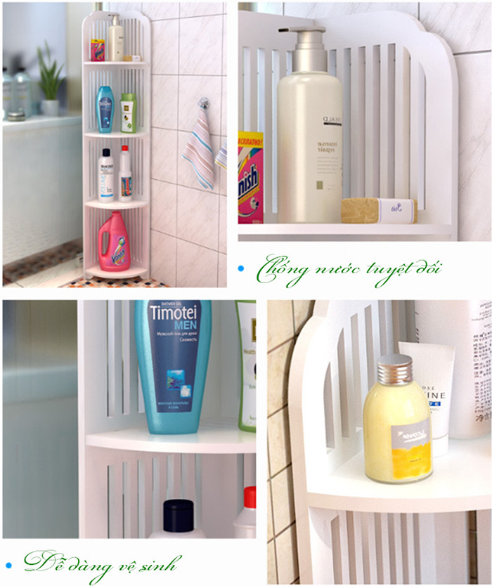 Công năng: Giúp bạn sắp xếp lại đồ dùng gọn gàng, không gian sống tuyệt vời hơn. Bạn có thể đặt kệ trong phòng tắm, phòng ngủ, phòng khách, tại shop, spa,