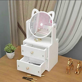 Bàn Trang Điểm, Kệ Đựng Mỹ Phẩm Mini 2 Ngăn kèm Gương Mèo Hello Kitty Lắp Ghép Bằng Gỗ Nhựa Để Phòng