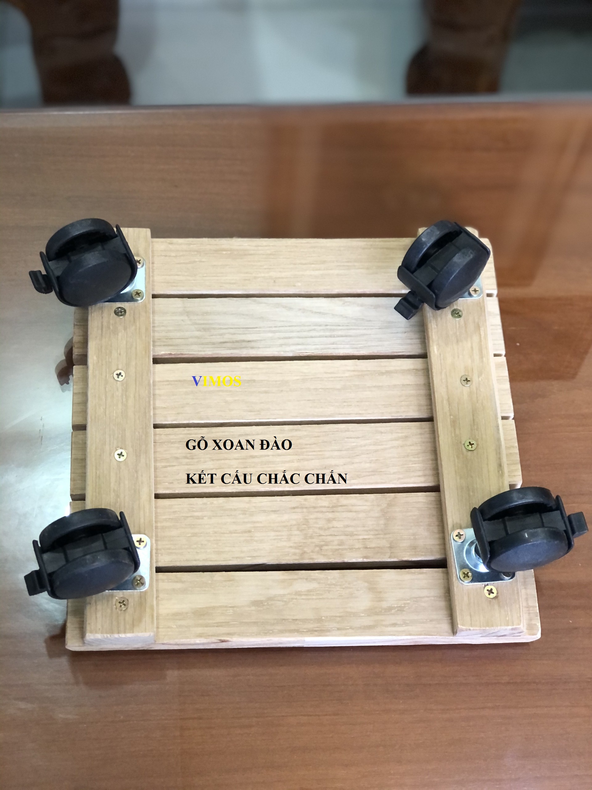ƯU ĐIỂM ĐẾ LÓT CHẬU CÂY CÓ BÁNH XE ANKAN ★ Gỗ tràm bông vàng được chọn từ gỗ nguyên, gỗ mới, ít mắt gỗ và được gia công tỉ mĩ, ít trầy xướt. ★ Xử lý 2