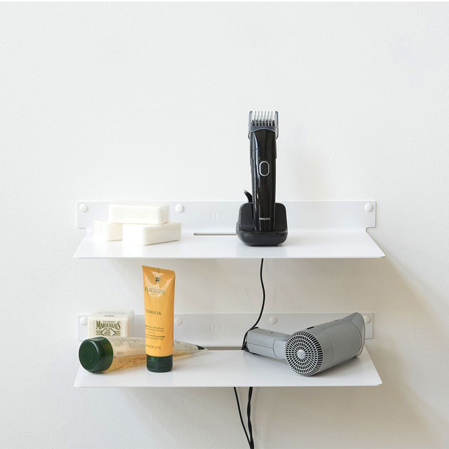 Thiết kế có nắp giúp đựng và chắn bụi. Dính vào tường bằng nắp vít hút chân không chắc chắn, không cần khoan hay đục tường. Phía trên tích hợp một giá gồm các khe