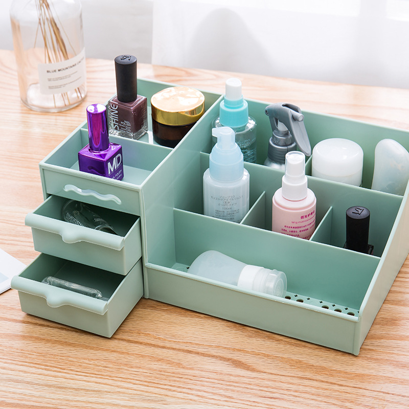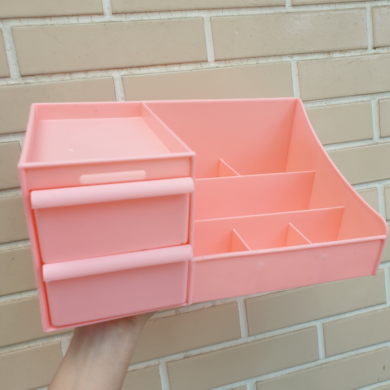 Mua tại TiktokKệ để đồ mỹ phẩm đa năng được làm bằng chất liệu nhựa an toàn, Được thiết kế hợp lý với 3 tầng, 2 ngăn . Hộp kích thước lớn, có thêm ngăn kéo, để được nhiều đồ tiện dụng. Sản phẩm rất tiện lợi để bạn cất giữ và bảo quản đồ trang sức, mỹ phẩm. Các ngăn chứa có kích thước khác nhau, giúp xếp đồ ngăn nắp, gọn gàng Màu sắc: giao màu ngẫu nhiên Kích thước: Sản phẩm: 27.5×16.8×12.5x5cm