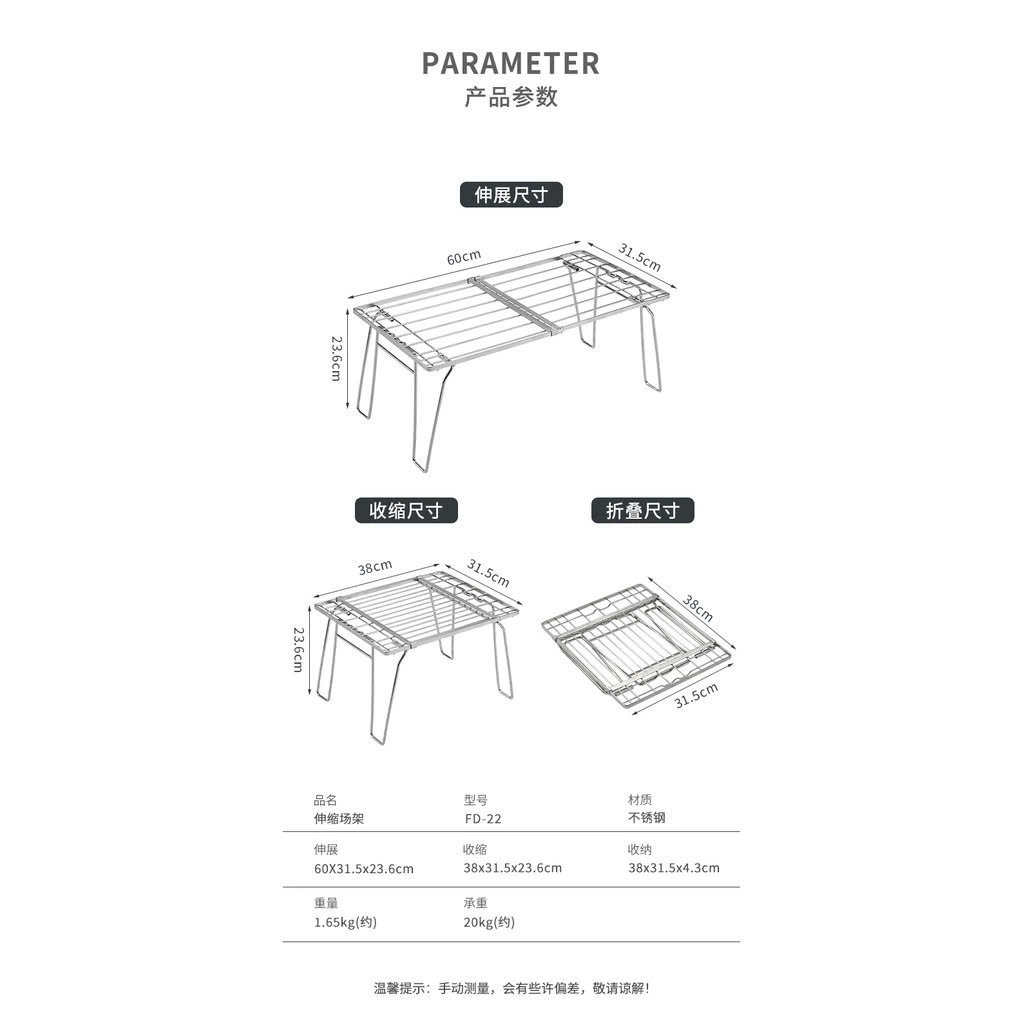 ✨Kệ thép không gỉ có thể xếp gọn hoặc mở rộng Campingmoon FD-22