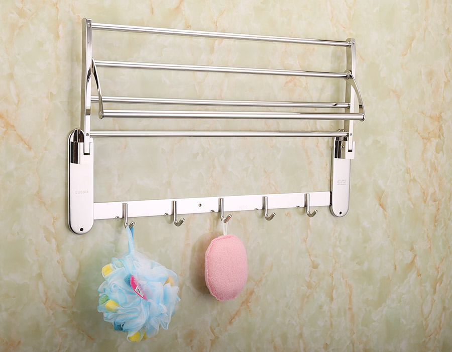 Kệ được thiết kế đang năng linh động với 1 máng để khăn, 1 máng treo phơi khăn tắm và 5 móc treo đồ, thuận tiên khi sử dụng