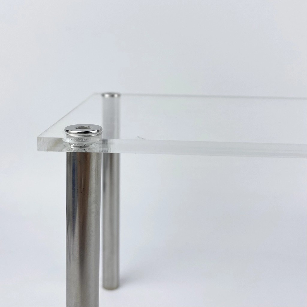 Ngoài ra, Kệ được thiết kế với phần chân đế từ bulon thon gọn nhưng rất chắc chắn có thể tận dụng khoảng trống dưới chân kệ để trưng bày lưu trữ các sản phẩm, và đồ dùng tuỳ theo nhu cầu sử dụng mà không chiếm thêm diện tích.