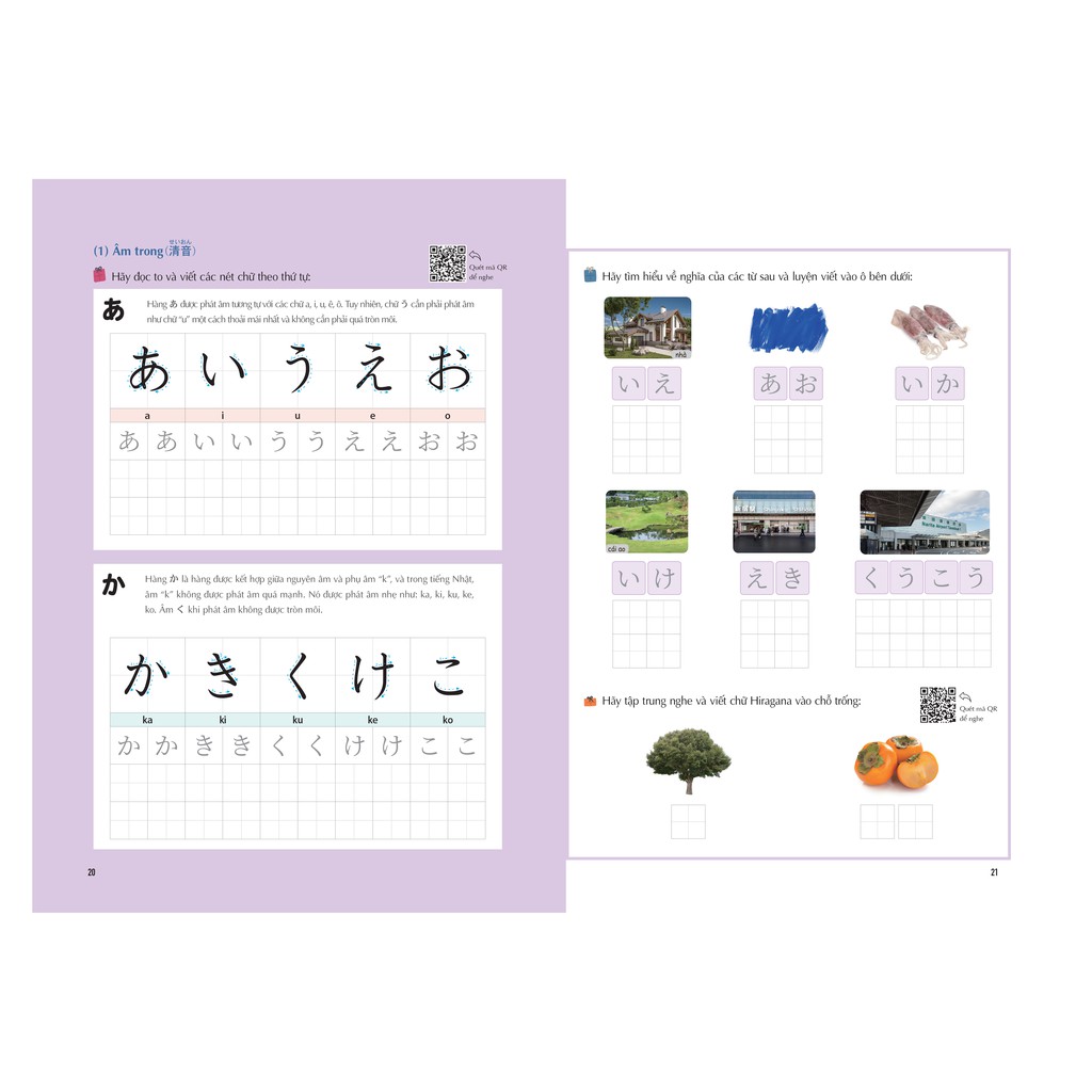 SÁCH TỰ HỌC HIRAGANA HỌC THÔNG QUA NGHE VÀ VIẾT - AOTS - (bìa mềm) - Giá bìa: 85.000đ Sách tự học bảng chữ cái Nhật Bản (Hiragana và Katakana). Hướng dẫn cách viết các