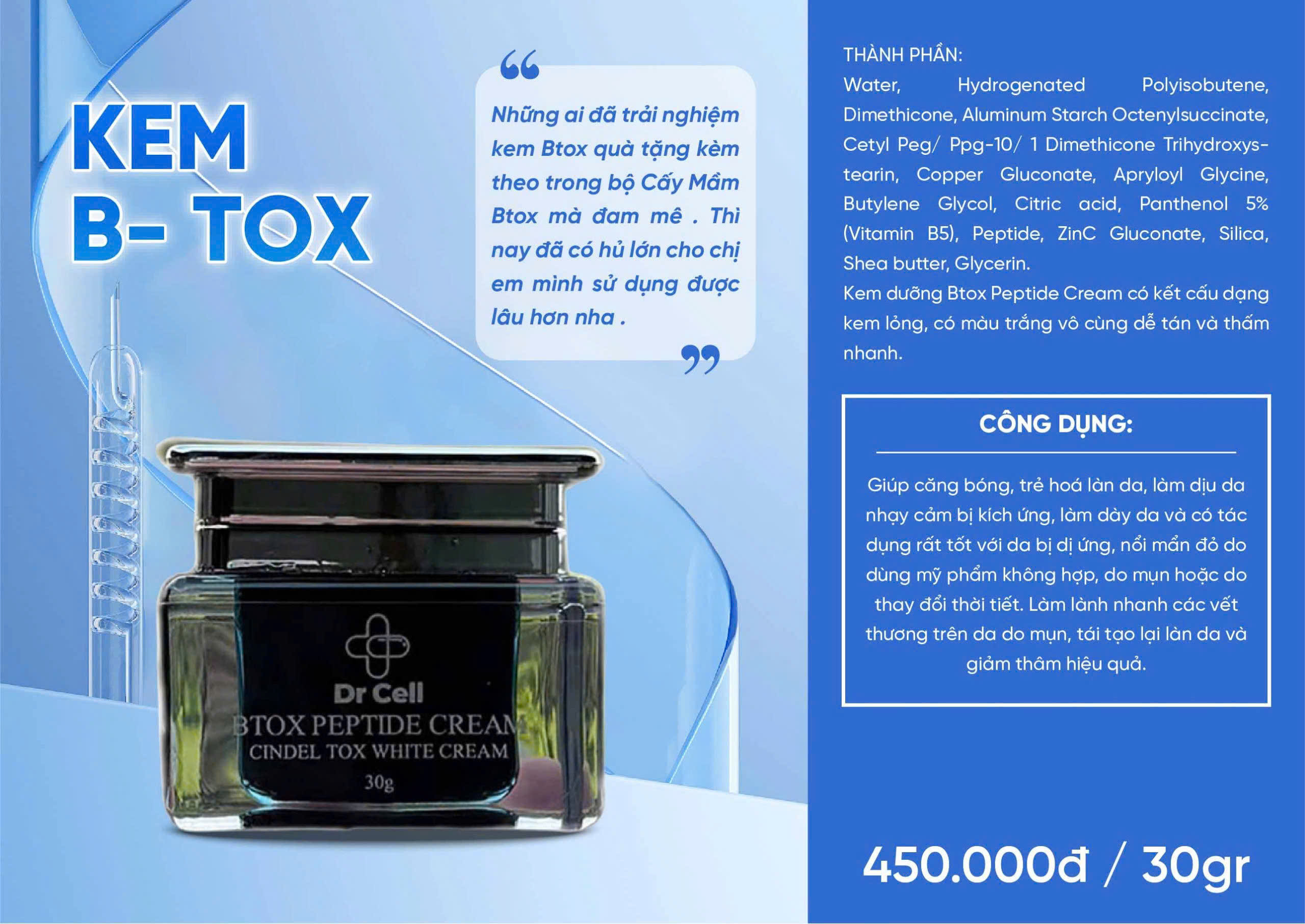 ✨Kem Btox Peptide Dr Cell 30g hỗ trợ làm trắng da căng bóng da phục hồi da mỏng yếu - Hàng Chính Hãng