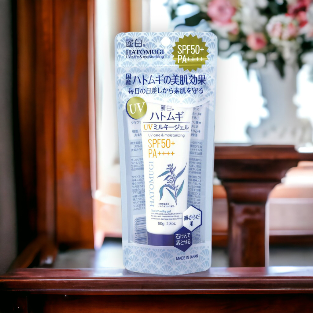 Sữa Chống Nắng Dưỡng Ẩm Ý Dĩ Hatomugi The UV Milky Gel SPF50+ PA++++ 80g – UV Care & Moisturizing
