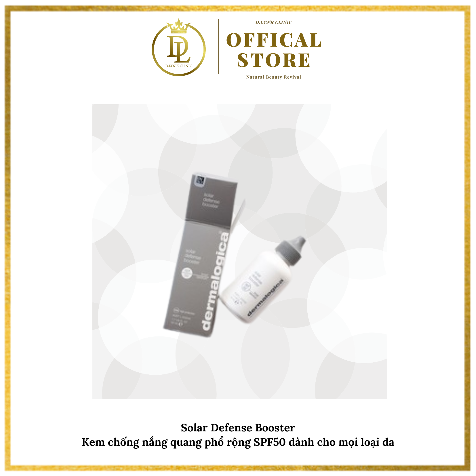Solar Defense Booster Kem chống nắng quang phổ rộng SPF50 dành cho mọi loại da - Đây là một loại kem chống nắng có trọng lượng nhẹ, không làm cay mắt, không gây kích ứng và không làm cho da của tôi bị bóng nhẫy. Các thành phần chống oxy hóa giúp cải thiện sự mịn màng và mềm mại cho da bên cạnh việc chống các các tác hại từ gốc tự do. Công thức tối tân, không tạo sự trắng bệt trên da, và là lớp chắn vô hình giúp chống lại các tổn hại do sự tấn công từ môi trường Tăng cường thêm khả năng chống nắng cho các loại kem dưỡng kê toa của Dermalogica bằng cách pha trộn một liều lượng tương đương, có thể sử dụng độc lập để có độ bảo vệ SPF50. Bổ sung khả năng chống tia UVA và UVB thiết yếu cho kem dưỡng ẩm hoặc kem nền của bạn với kem chống nắng Quang Phổ Rộng. Công thức tối tân, không tạo sự trắng bệt trên da, và là lớp chắn vô hình giúp chống lại các tổn hại do sự tấn công từ môi trường. Các thành phần chống oxy hóa giúp cải thiện sự mịn màng và mềm mại cho da bên cạnh việc chống các các tác hại từ gốc tự do. Thành phần: Avobenzone, Octinoxate, Octisalate and Oxybenzone: Kem dưỡng hóa học cung cấp sự bảo vệ tia UVA va UVB tối ưu. Hạt Vitis Vinifera (Hạt Bưởi) và Camellia Sinensis (Trà Xanh): Chiết xuất dược thảo làm dịu chống oxy hóa và cung cấp việc chống enzyme. Magnesium Ascorbyl Phosphate (Vitamin C) và Tocopherol (Vitamin E): Chống oxy hóa để cải thiện sự mềm mại của làn da, giúp kiểm soát tổn thương do gốc tự do gây ra.