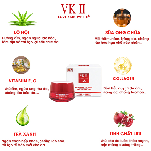 - Tăng cường bổ sung hàm lượng collagen giúp tăng độ đàn hồi, phục hồi da tổn thương
