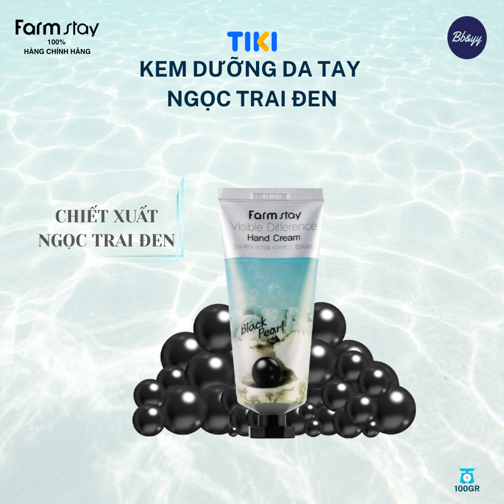 KEM DƯỠNG DA TAY NGỌC TRAI ĐEN _ VISIBLE DIFFERENCE HAND CREAM BLACK PEARL THÀNH PHẦN: Xem trên bao bì sản phẩm. CÔNG DỤNG: Kem dưỡng tay với kết cấu mềm mịn thẩm thấu vào da khô ráp và vùng đầu ngón tay, giúp nuôi dưỡng sâu bên trong, mang lại đôi tay mềm mại và ẩm mượt mà không gây bết dính. LƯU Ý KHI SỬ DỤNG: - Ngưng sử dụng nếu da bị kích hoặc sau khi sử dụng tiếp xúc trực với ánh nắng mà bị kích ứng, tham khảo ngay với ý kiến chuyên gia hay bác sĩ chuyên khoa. - Tránh xa tầm tay trẻ em và vật nuôi. - Tránh ánh nắng trực tiếp lên sản phẩm. - Đậy nắp kín sau khi sử dụng. - Bảo quản sản phẩm ở nhiệt độ thường. Ngày SX & HSD: Xem trên bao bì sản phẩm. Trọng lượng: 100gr. Nhà SX: Farmstay - Hàn Quốc. Nhà NK & PP: CTY TNHH BB&YY ( Beauty and Young).