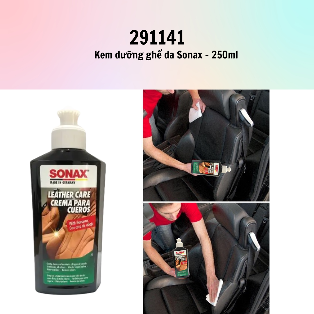 Mua tại TiktokCùng điểm qua các bước bảo dưỡng làm sạch da với Kem dưỡng ghế da Sonax Leather Care 291141 mẫu 2020 250ml Mẫu 2019 và 2020 chỉ khác nhau ở kiểu dáng vòi xịt kem dưỡng Bước 1: Lau sạch bụi bẩn trên da bằng máy hút bụi hoặc vải mềm Bước 2: Lắc nhẹ chai và dùng một chút kem dưỡng lên khoảng da cần thao tác Bước 3: Xoay nhẹ nhàng bằng vải mềm sẽ giúp da sạch bóng hoàn hảo như ban đầu
