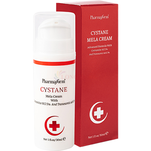 Mua tại TiktokKem dưỡng làm sáng da Pharmaform Cystane Mela Cream Thành phần chính: 5% Cysteamine, 3% Tranexamic Acid, 5% Niacinamide, Sodium Hyaluronate, Dipotassium Glycyrrhi Công dụng: Hỗ trợ làm sáng và đều màu da, cải thiện mảng sắc tố, da xỉn màu Hướng dẫn sử dụng: