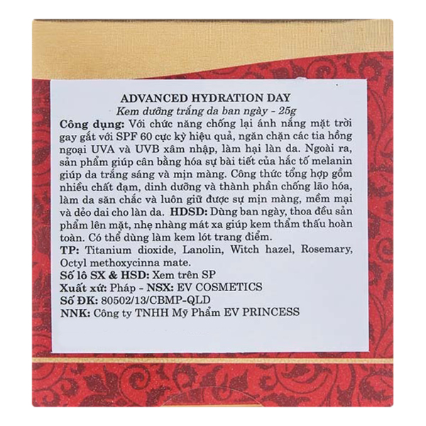 Dùng buổi sáng. Chấm sản phẩm lên 5 điểm (trán, mũi, hai má, cằm), sau đó nhẹ nhàng thoa đều khắp mặt giúp kem thẩm thấu hoàn toàn. Có thể dùng thêm Kem chống nắng EV Princess 100 SPF Sun Block Lotion để bảo vệ da tốt nhất.