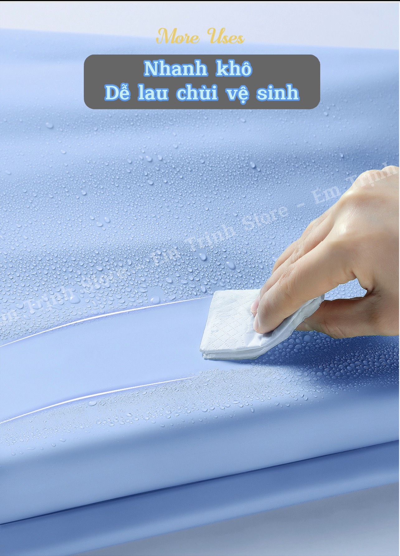 • Khi đi mưa xong, khách giũ áo mưa là lượng nước đã trôi 80%-90%, khách treo tầm 5p là khô ráo, xếp gọn vào túi đựng áo mưa.