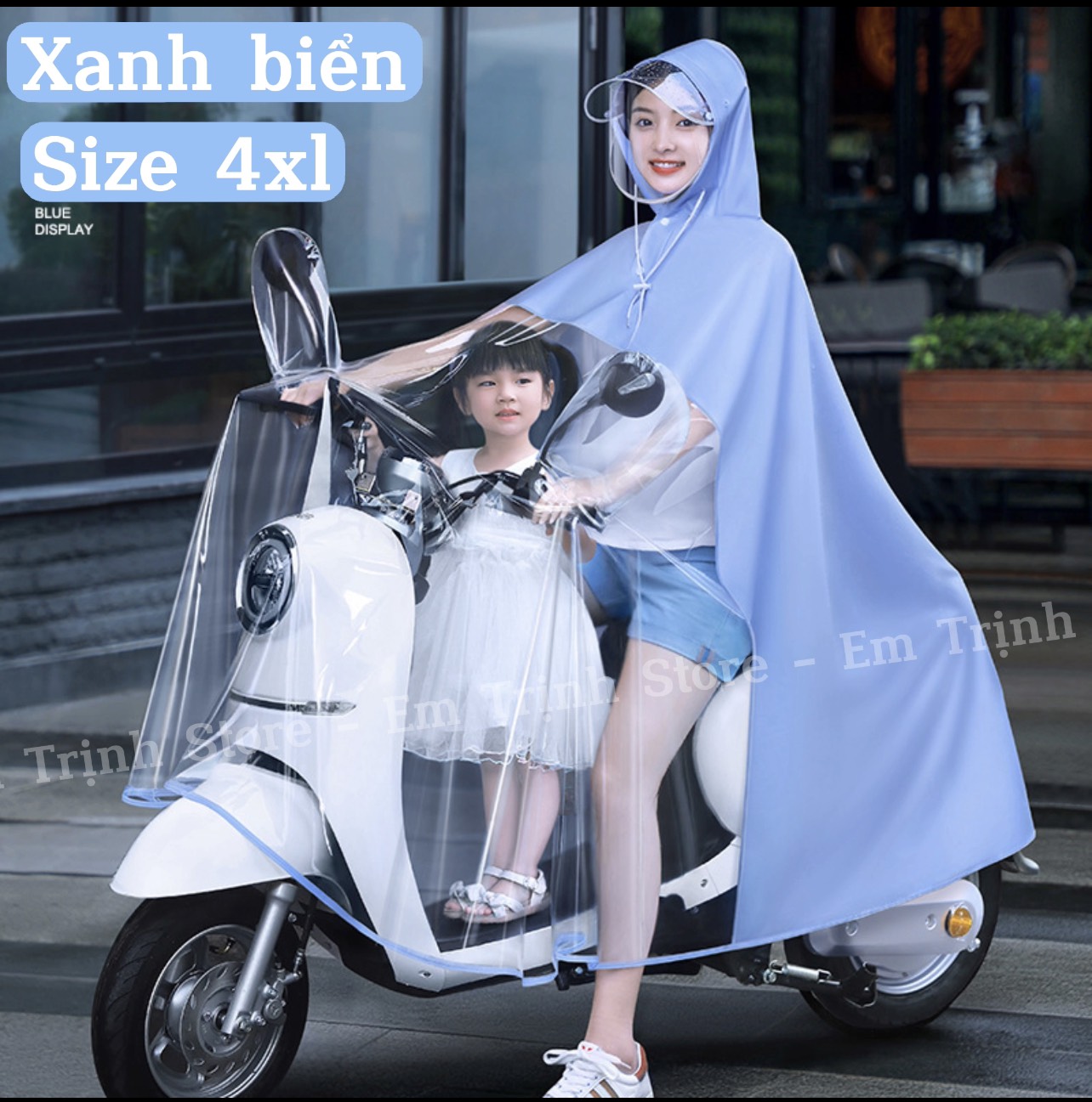 Áo mưa nửa trước trong suốt cho Mẹ và Bé, phủ toàn thân, kèm kính chắn mưa.