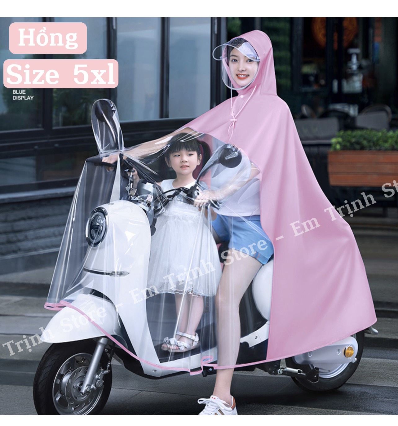 Áo mưa cho Mẹ và Bé nửa trước trong suốt kèm kính chắn mưa, che phủ toàn thân | Trùm đồ gia dụng