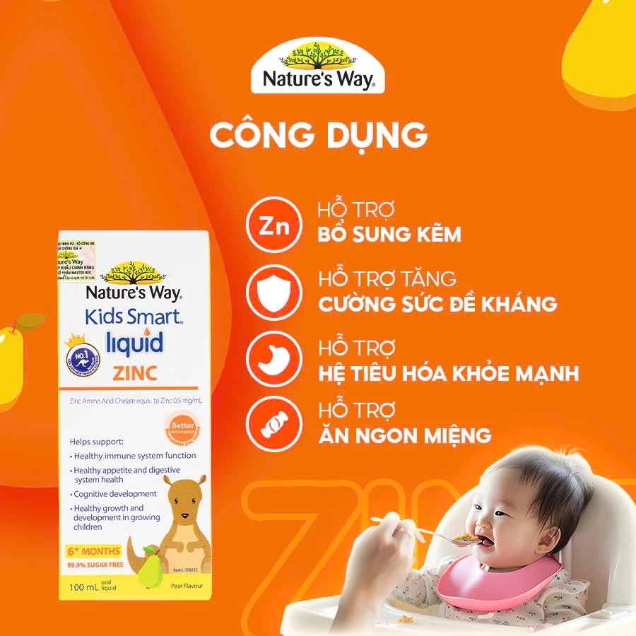 ✨Kẽm Hữu Cơ Cho Bé Nature's Way Kids Smart Liquid Zinc Hỗ Trợ Bé Ăn Ngon, Tăng Đề Kháng 100ml