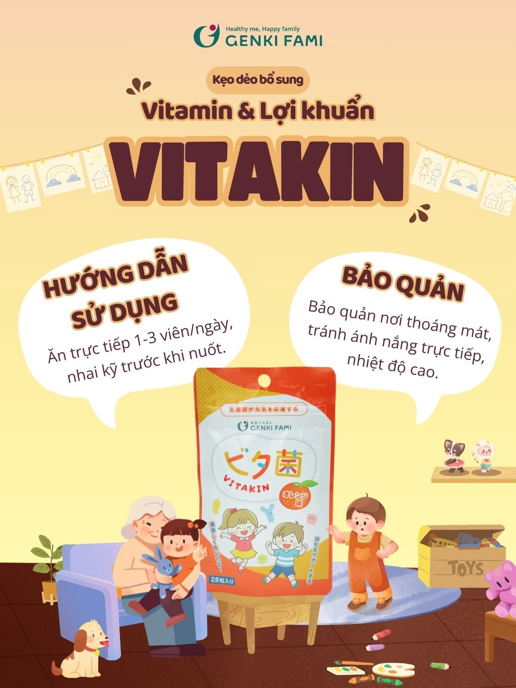THÀNH PHẦN: Đường cát, siro tinh bột, bột màng oblate, nước cam cô đặc, lợi khuẩn axit lactic ( 1 tỷ lợi khuẩn), dầu gan cá mập tinh chế (11.33 mg), vitamin C (