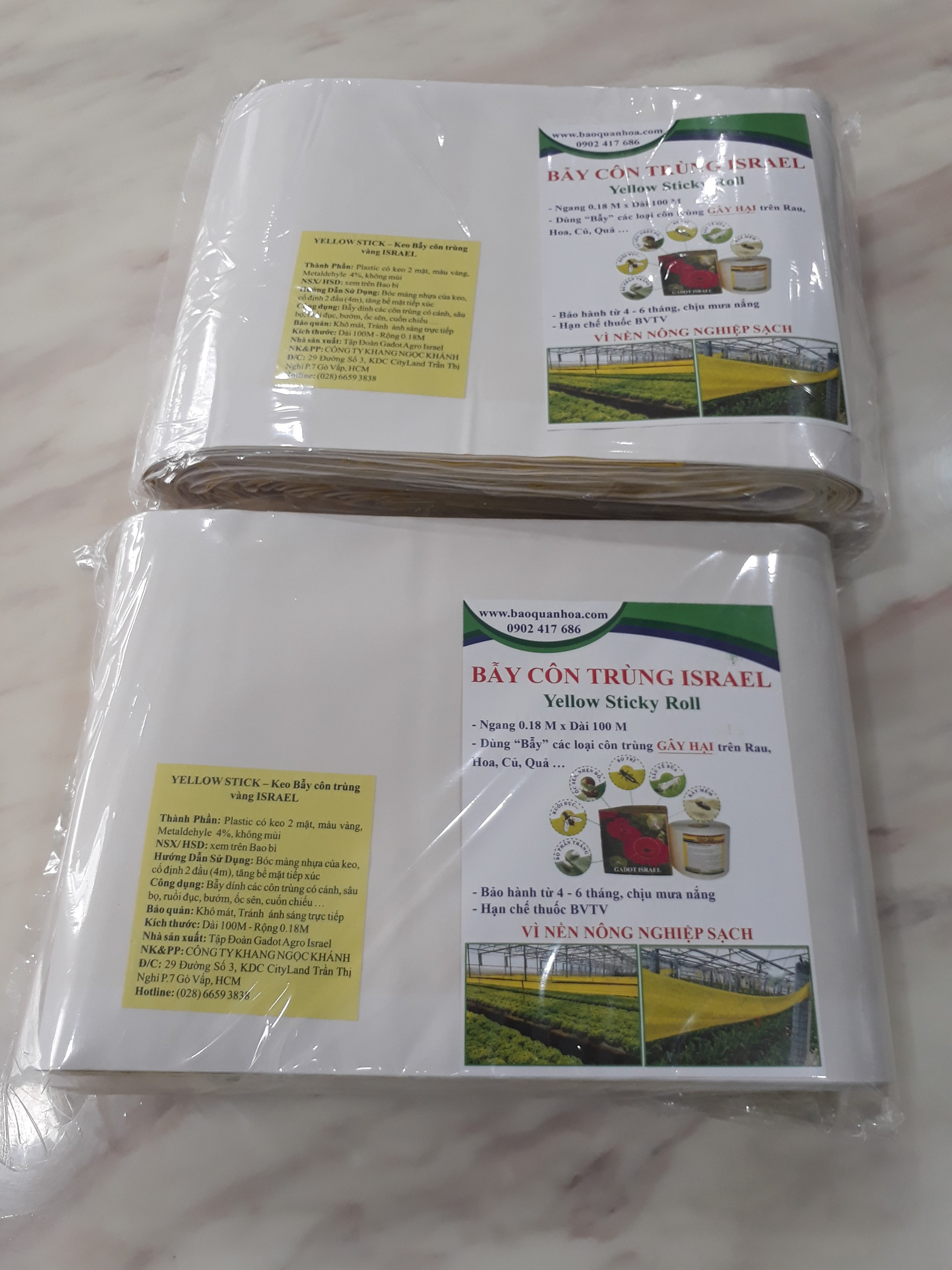 MIẾNG DÍNH VÀNG BẪY RUỒI CÁC LOẠI VÀ CÔN TRÙNG KHÁC (STICKY YELLOW ROLL). NHẬP KHẨU ISRAEL LÀ SẢN PHẨM SINH HỌC TRONG NÔNG NGHIỆP SẠCH (KHÔNG HÓA CHẤT) - Hạn chế sử dụng thuốc