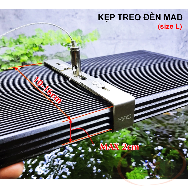Kẹp giá treo đèn MAD lắp ráp đa năng với các tùy chọn kích thước giúp việc kẹp và treo các loại đèn máng thủy sinh phổ biến trên thị trường trở nên dễ dàng hơn, tăng tính thẩm mỹ cho bể.