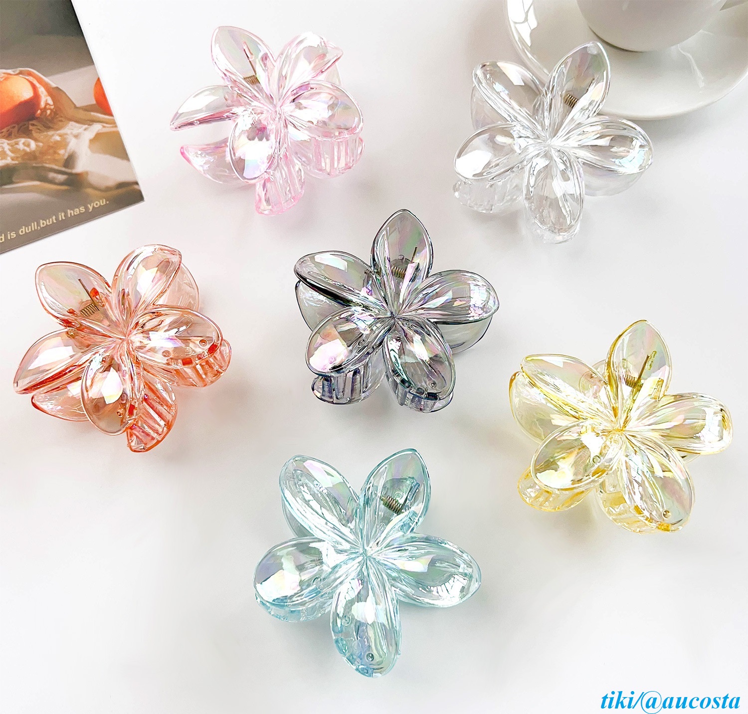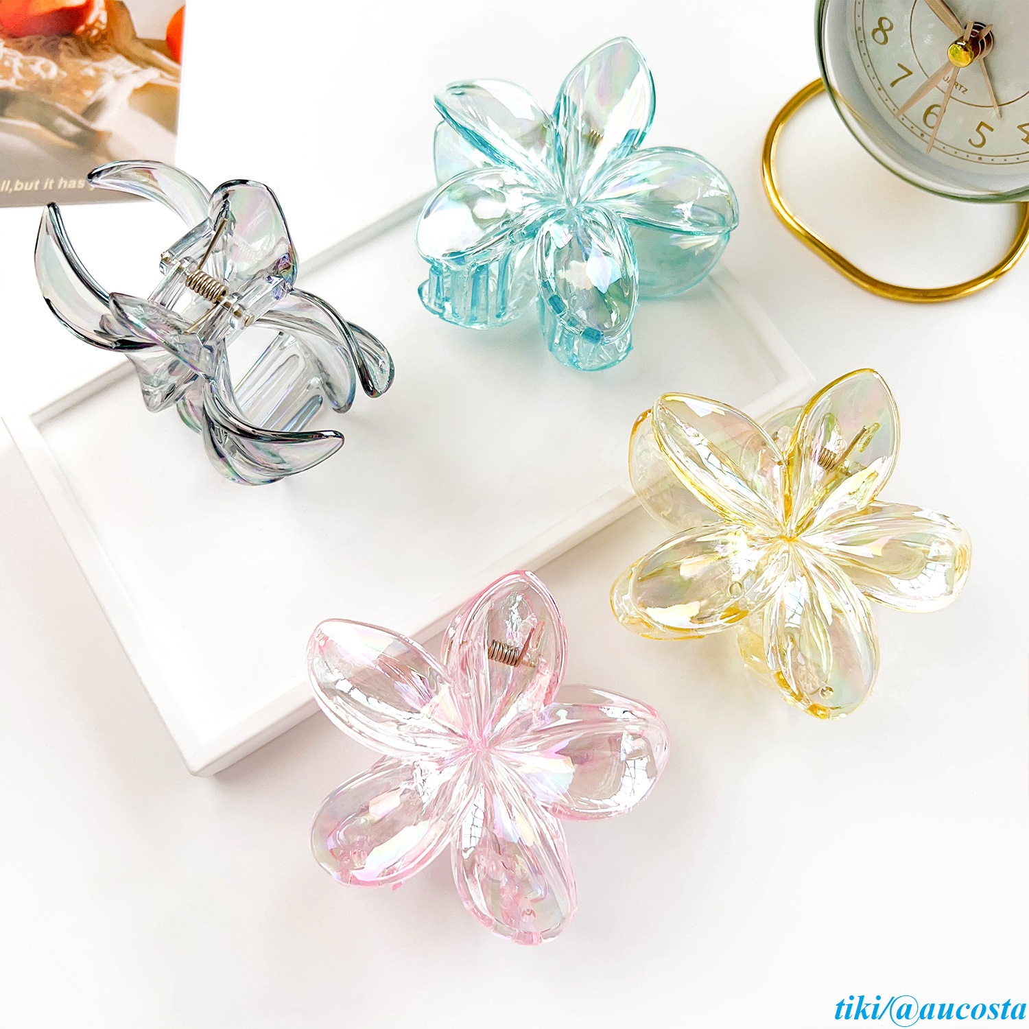 ✨Kẹp tóc hoa sứ trong suốt tráng gương cao cấp