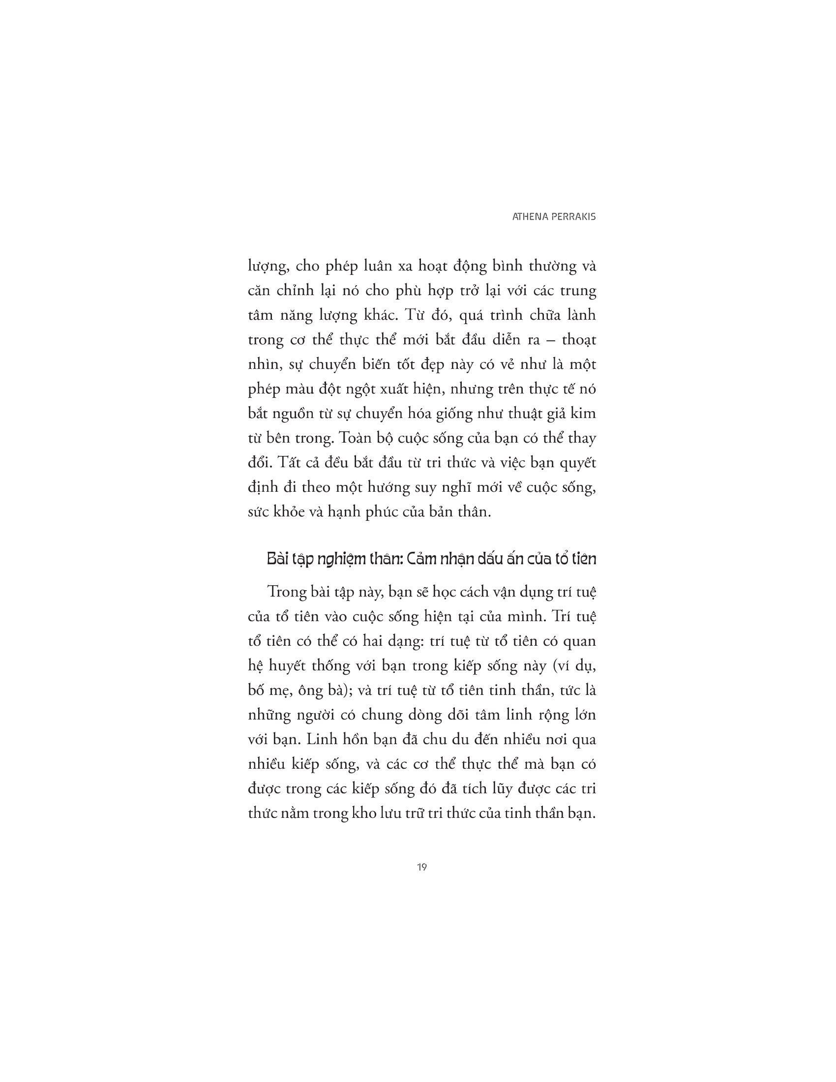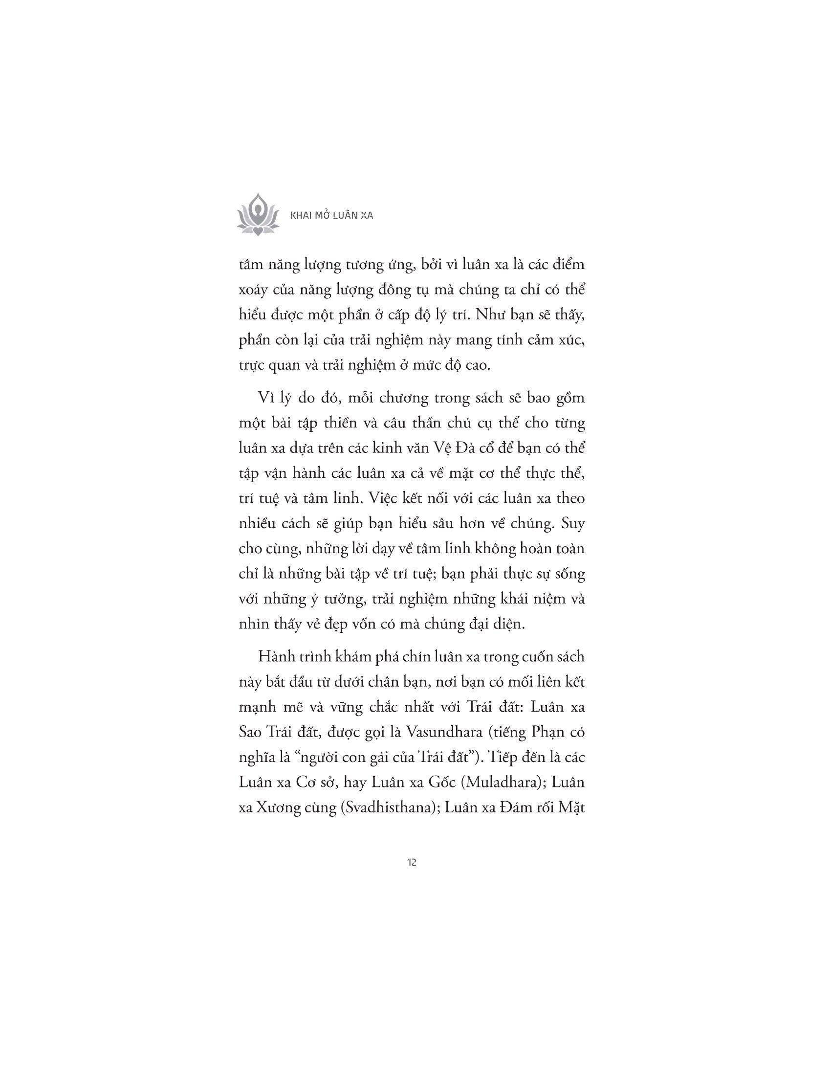 Mỗi chương sách còn bao gồm các bài tập để độc giả có thể tiếp cận năng lượng của từng luân xa, bao gồm thiền định, viết nhật ký hoặc làm việc với người hướng dẫn tinh thần.