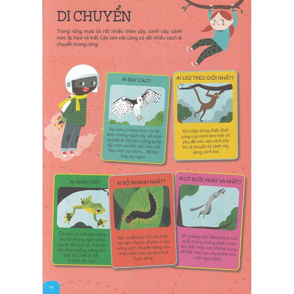 Tập sách giúp bé nhận biết các loài động vật hoang dã như: hổ, báo, cá sấu… cùng những thông tin xung quanh kích thước cơ thể, lối sống và môi trường số Bé cũng sẽ biết được những kỉ lục của thế giới rừng già như: loài có loài kích thước lớn nhất, nhỏ nhất, các hệ sinh thái đặc trưng… Đặc biệt, với bộ sách này, các bé không chỉ được nhận biết về thế giới động vật, nơi sinh sống, thức ăn chính… của chúng mà còn được cắt - dán - xếp hình, tô mà theo tiêu chí tổ chức: Học – Chơi – Khám Phá. Nhờ vậy, tập sách giúp thế giới quan của trẻ hình thành sống động, giúp trẻ phát triển khả năng quan sát, tưởng tượng, ghi nhớ, khả năng thể hiện cảm xúc và trí thông minh của mình.