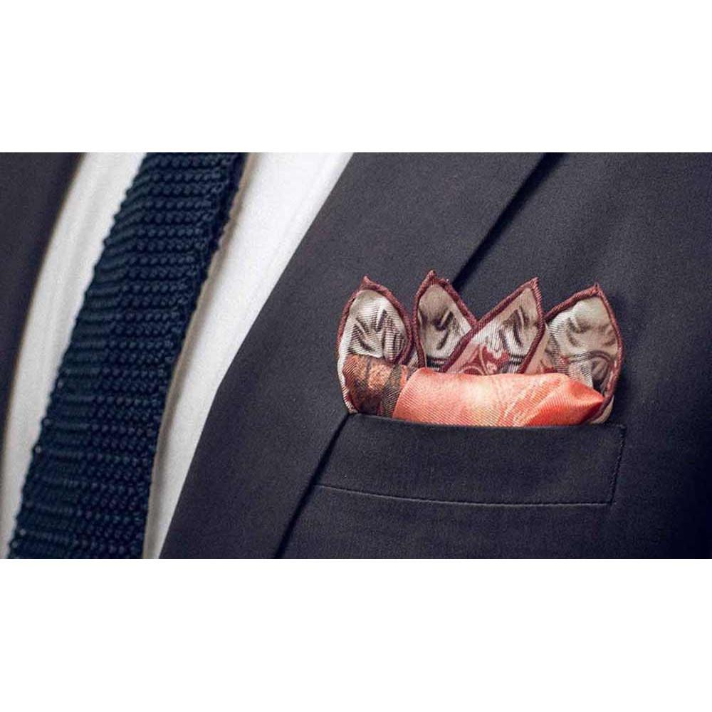 "Chất liệu khăn cài túi áo vest(Pocket Square) thường được làm bằng loại Silk Cao Cấp, bóng bẩy với hoa văn sặc sỡ hoặc cũng có thể với vải thô. Kích thước vàng của Pocket