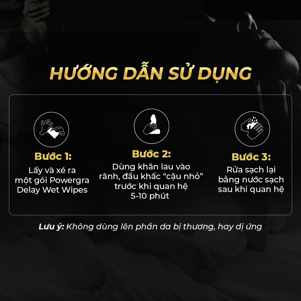 ✪ Cách dùng: Lấy một miếng khăn lau và lau trực tiếp lên cậu nhỏ trước khi nhập cuộc 5 phút. Vệ sinh lại với nước sau khi sử dụng