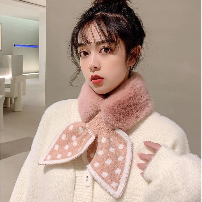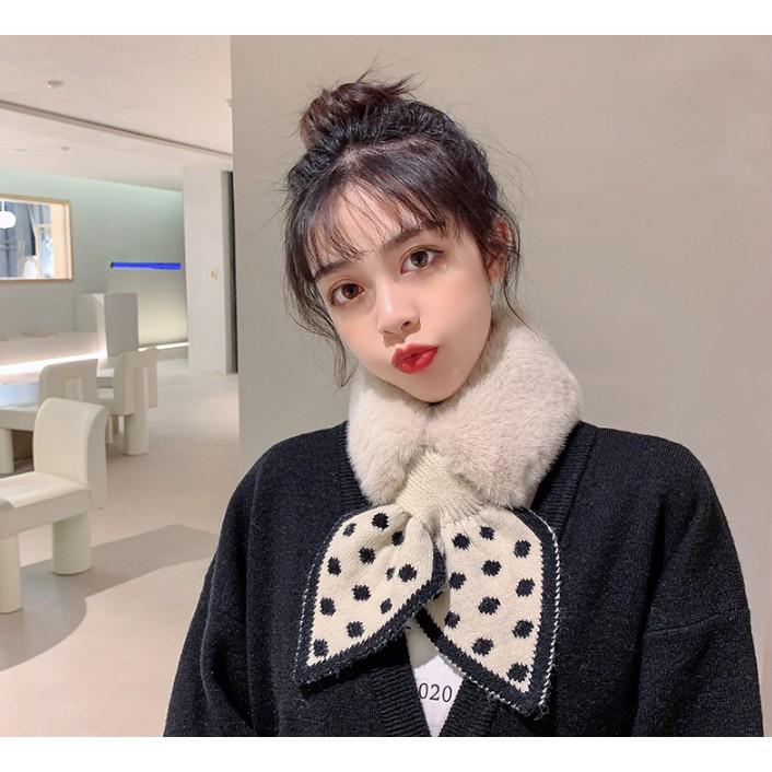Khăn quàng cổ lông thỏ phối len thắt nơ ấm áp phong cách thời trang Dành Cho Nữ hot nhất 2020