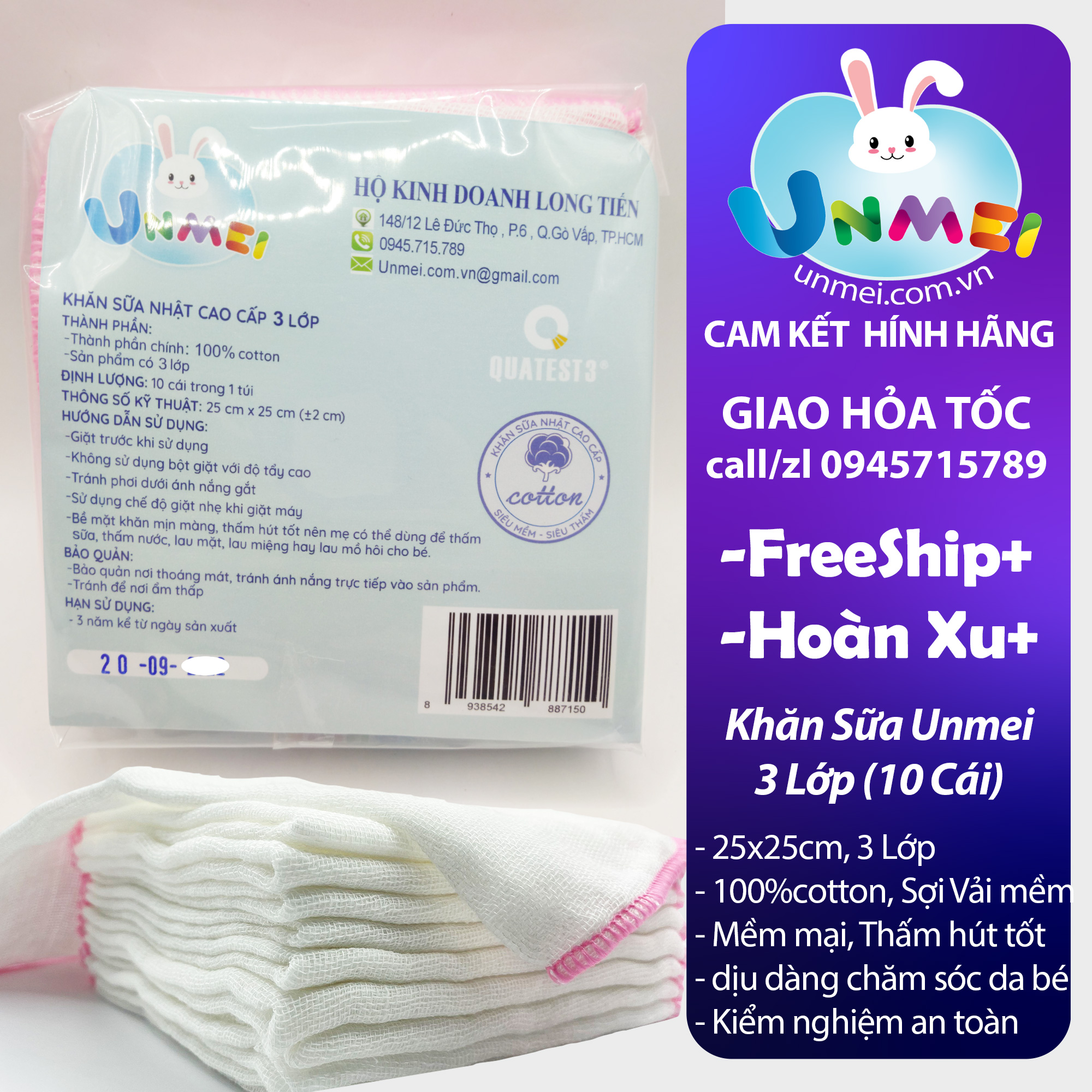Khăn sữa Unmei 100% cotton cao cấp tiêu chuẩn xuất Nhật, dành cho trẻ sơ sinh. An toàn cho bé, được các mẹ trên toàn quốc tin dùng.