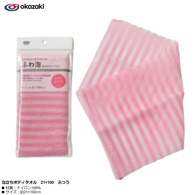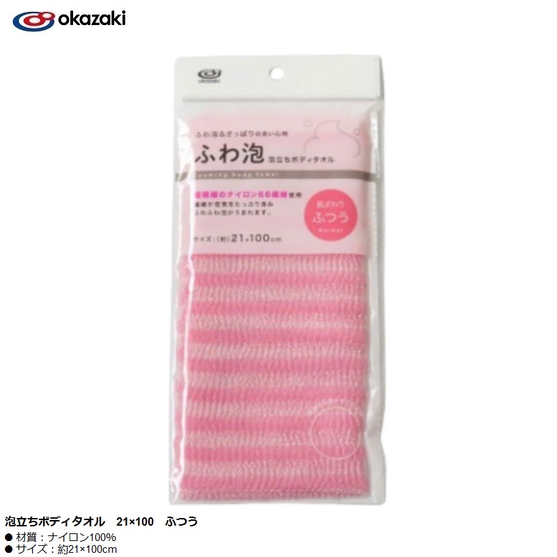 Khăn tắm tạo bọt mịn Okazaki 10×100㎝ THÔNG TIN SẢN PHẨM Xuất xứ: Nhật Bản - Màu sắc: Màu hồng | Màu xanh(Giao ngẫu nhiên) - Kích thước: 10×100㎝ - Chất liệu:100% Polyester cao cấp