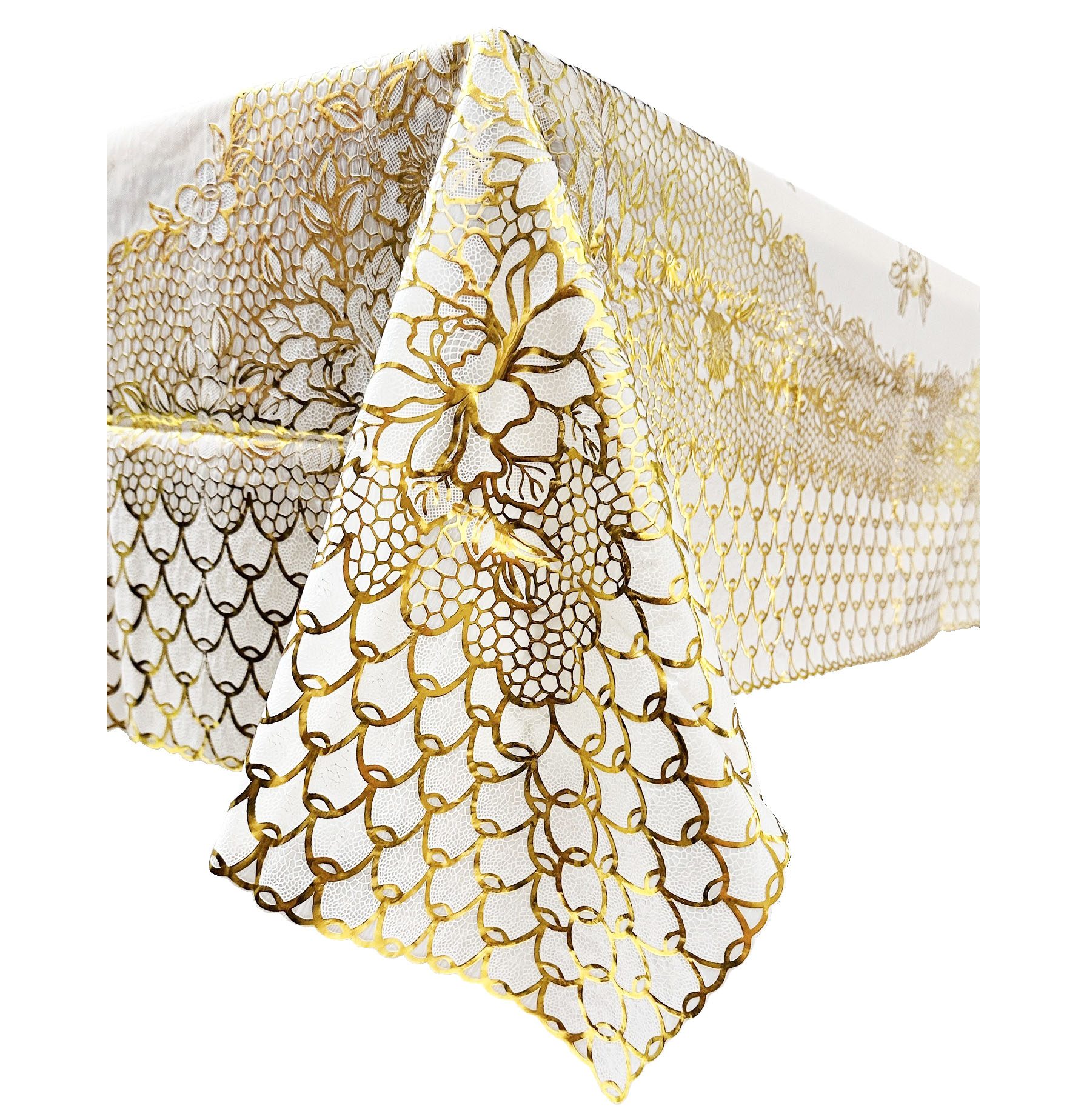 ✨Khăn Trải Bàn WLG.751 (137x180 cm), hoa văn phủ nhũ vàng, nhựa PVC dẻo, không thấm nước, dễ vệ sinh