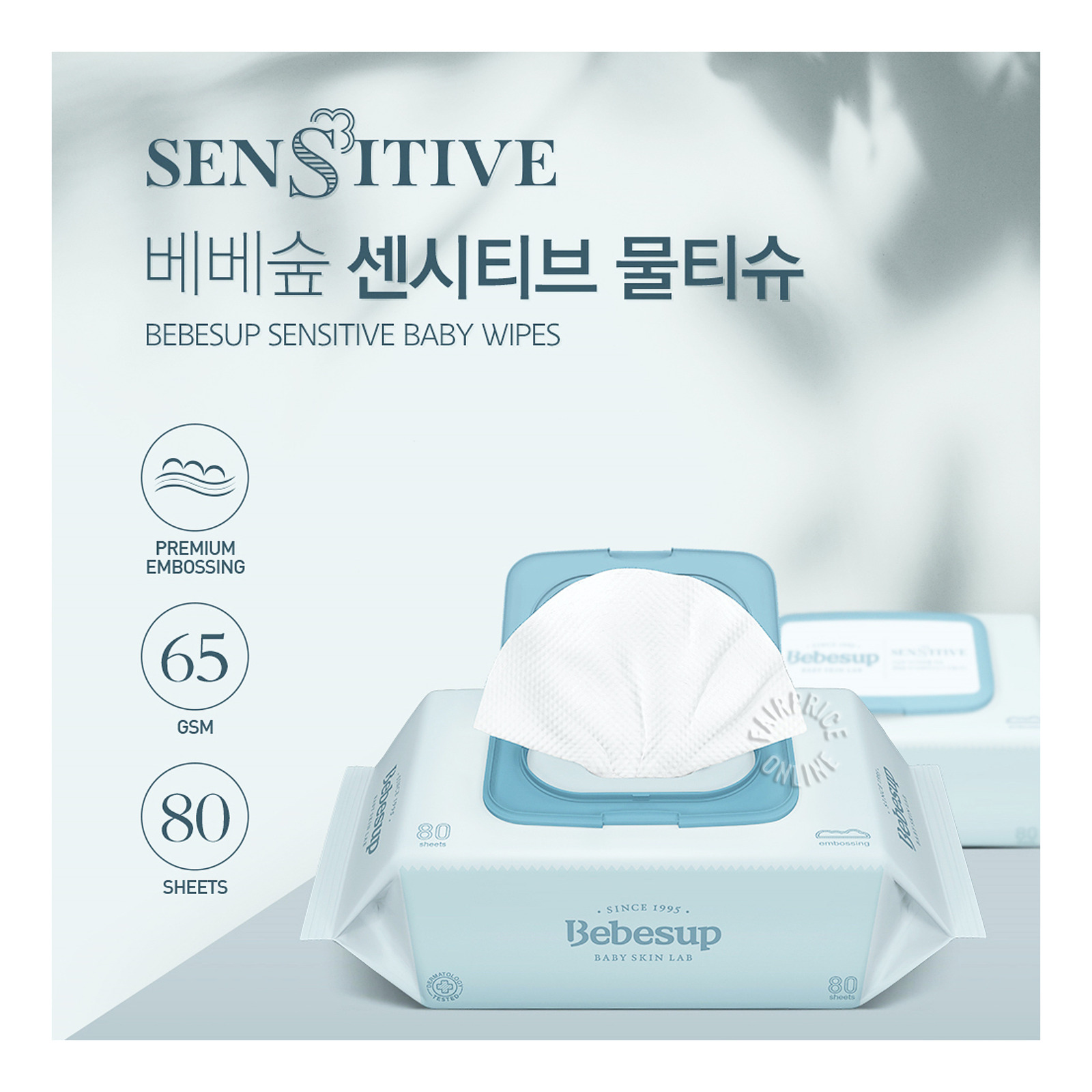 Khăn ướt em bé BEBESUP SENSITIVE 80 tờ/gói-nhập khẩu nguyên gói từ Hàn Quốc