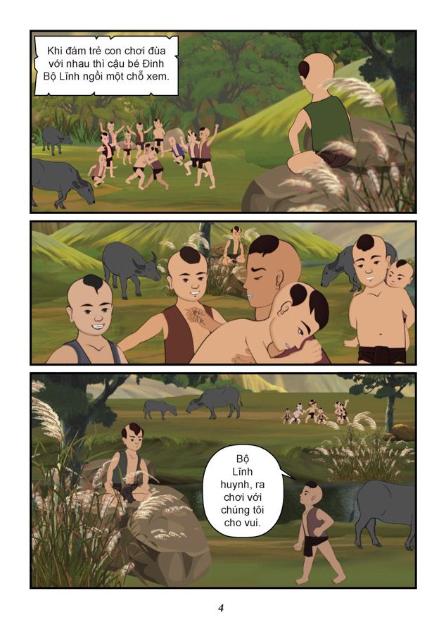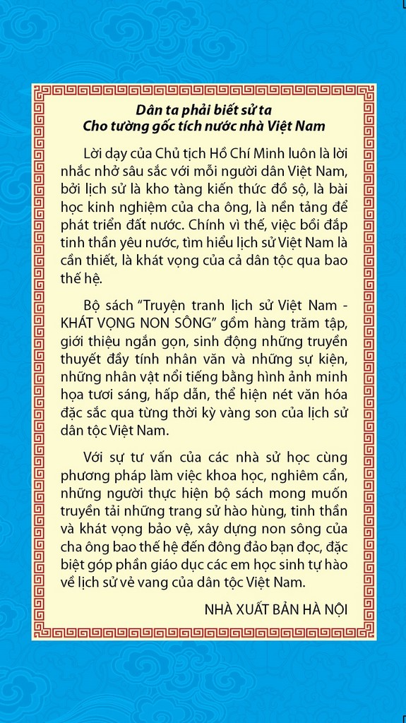 Bộ sách “Truyện tranh lịch sử Việt Nam – Khát vọng non sông” gồm hàng trăm tập, giới thiệu ngắn gọn, sinh động những truyền thuyết đầy tính nhân văn và những sự kiện, những nhân vật nổi tiếng trong lịch sử hàng nghìn năm của dân tộc Việt Nam. Đinh Bộ Lĩnh và thế trận cờ lau – Ngay từ nhỏ, Đinh Bộ Lĩnh đã thể hiện người có tư chất phi thường của bậc đế vương, thông minh và mang trong mình hoài bão lớn. Thời kỳ Hậu Ngô Vương, phương Nam, phương Bắc rối ren, ông thay Trần Minh Công giữ đất Hoa Lư, chiêu mộ hào kiệt, thủ hiểm một nơi, từng bước dưỡng binh hùng tướng mạnh chờ thời cơ nhằm thu phục các sứ quân, thống nhất đất nước.
