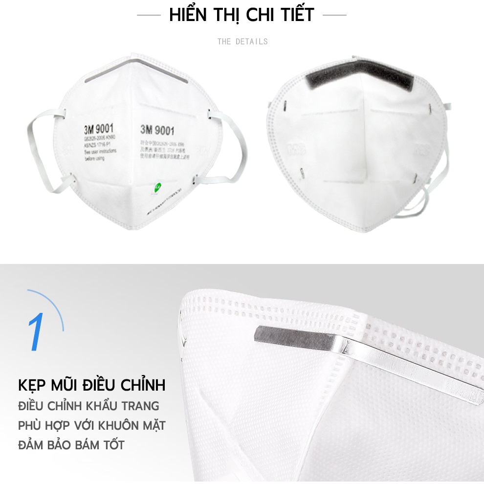 3M đã nghiên cứu và giới thiệu đến người tiêu dùng Khẩu trang chống bụi và kháng khuẩn đạt chuẩn KN90 3M 9001A tiên tiến giúp bảo vệ hệ hô hấp thật hiệu quả, đồng thời đem lại cảm giác thoải mái khi sử dụng. Khẩu trang chống bụi và kháng khuẩn đạt chuẩn KN90 3M 9001A đạt các tiêu chuẩn như QCVN 08:2012/BLĐTBXH AS/NZS 1716-2003 (ÚC); GB2626-2006 (TRUNG QUỐC) Và NIOSH KN94 - tiêu chuẩn quốc tế