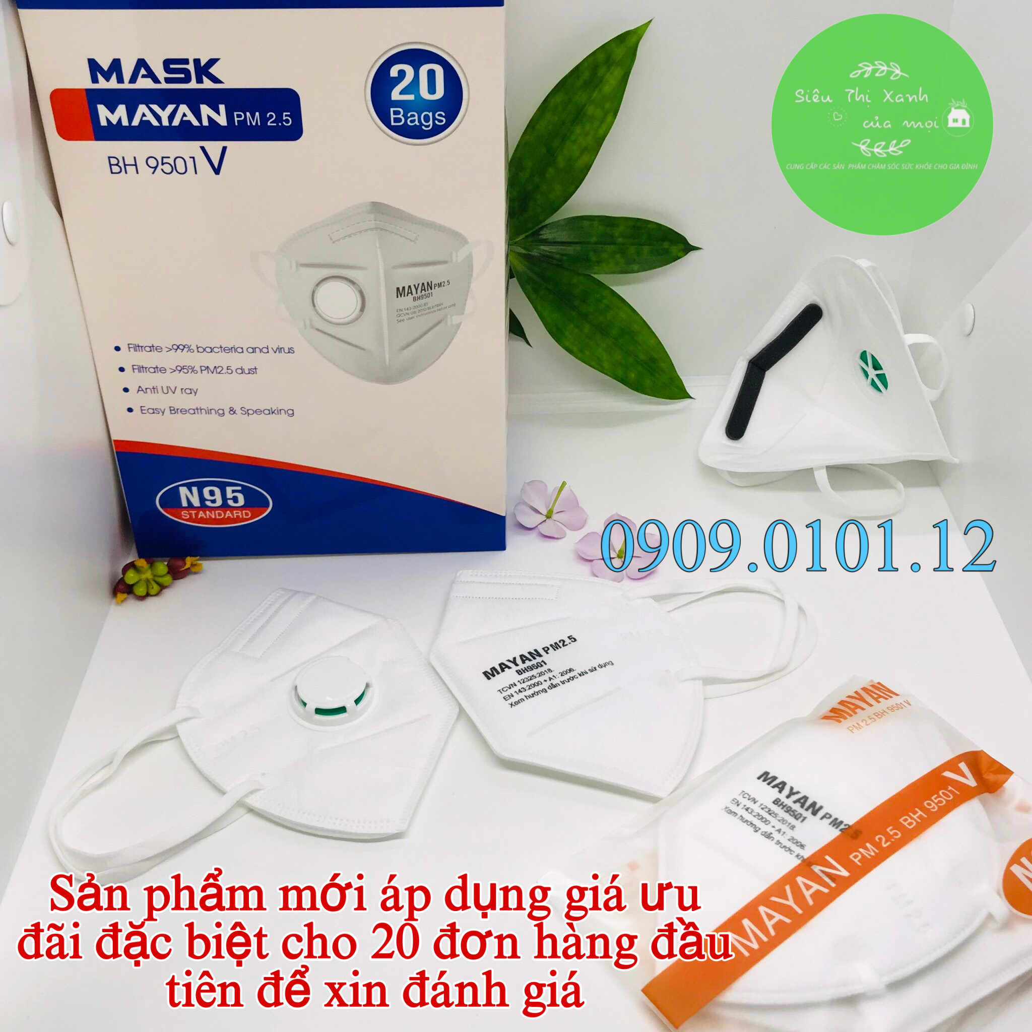 ✨Khẩu Trang N95 Có Van Thở - Đệm Mũi Cao Cấp [Mayan PM 2.5 - Chính Hãng - 4 Lớp Kháng Khuẩn - Than Hoạt Tính]