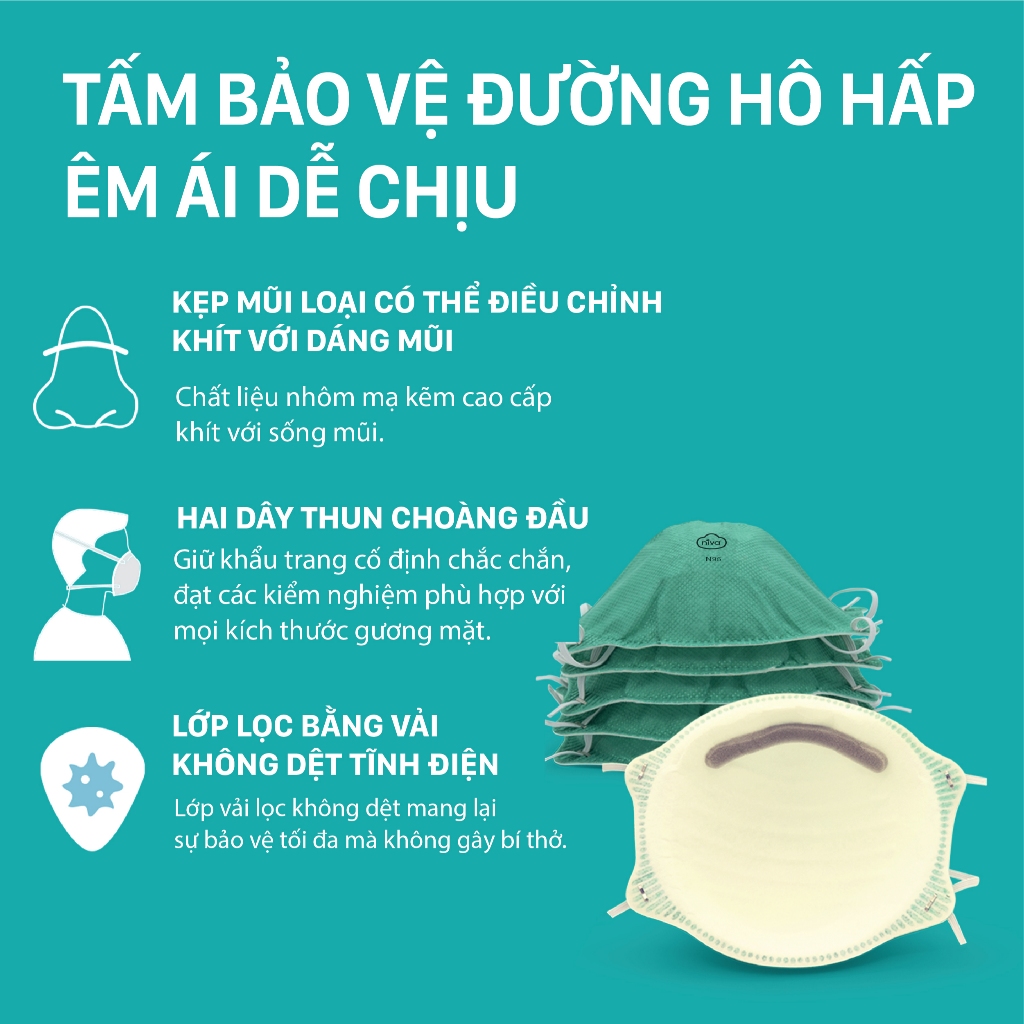 *Xuất xứ: Việt Nam *Hạn sử dụng: 2.5 năm kể từ ngày sản xuất *Số lượng: 5 cái ĐẶC ĐIỂM NỔI BẬT _Màng lọc chống UV 98% Công nghệ Màng lọc vật lý đặc