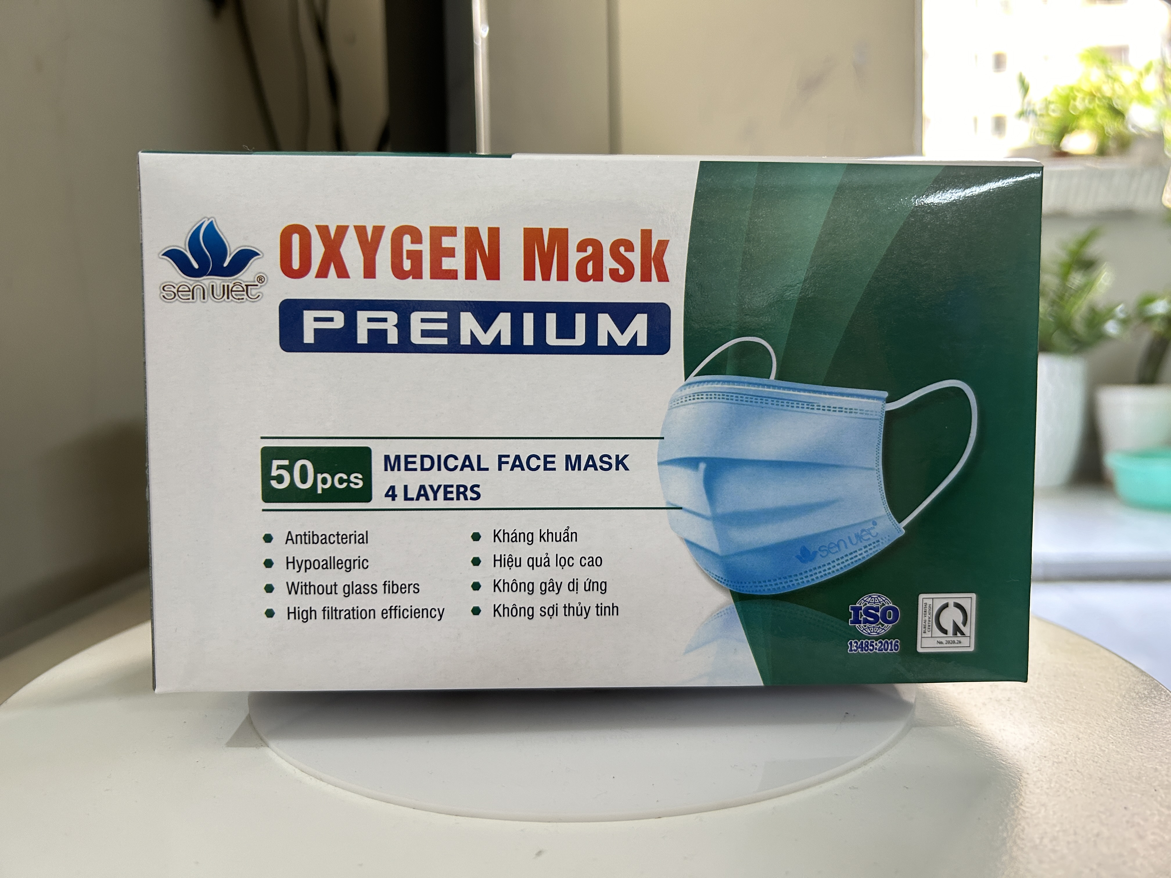 Khẩu trang y tế 4 lớp Oxygen Mask - Nhà sản xuất nổi tiếng Sen Việt - Cản lực khí thở thấp - Không chất gây ung thư - Không chứa chì, cadmium, crom -