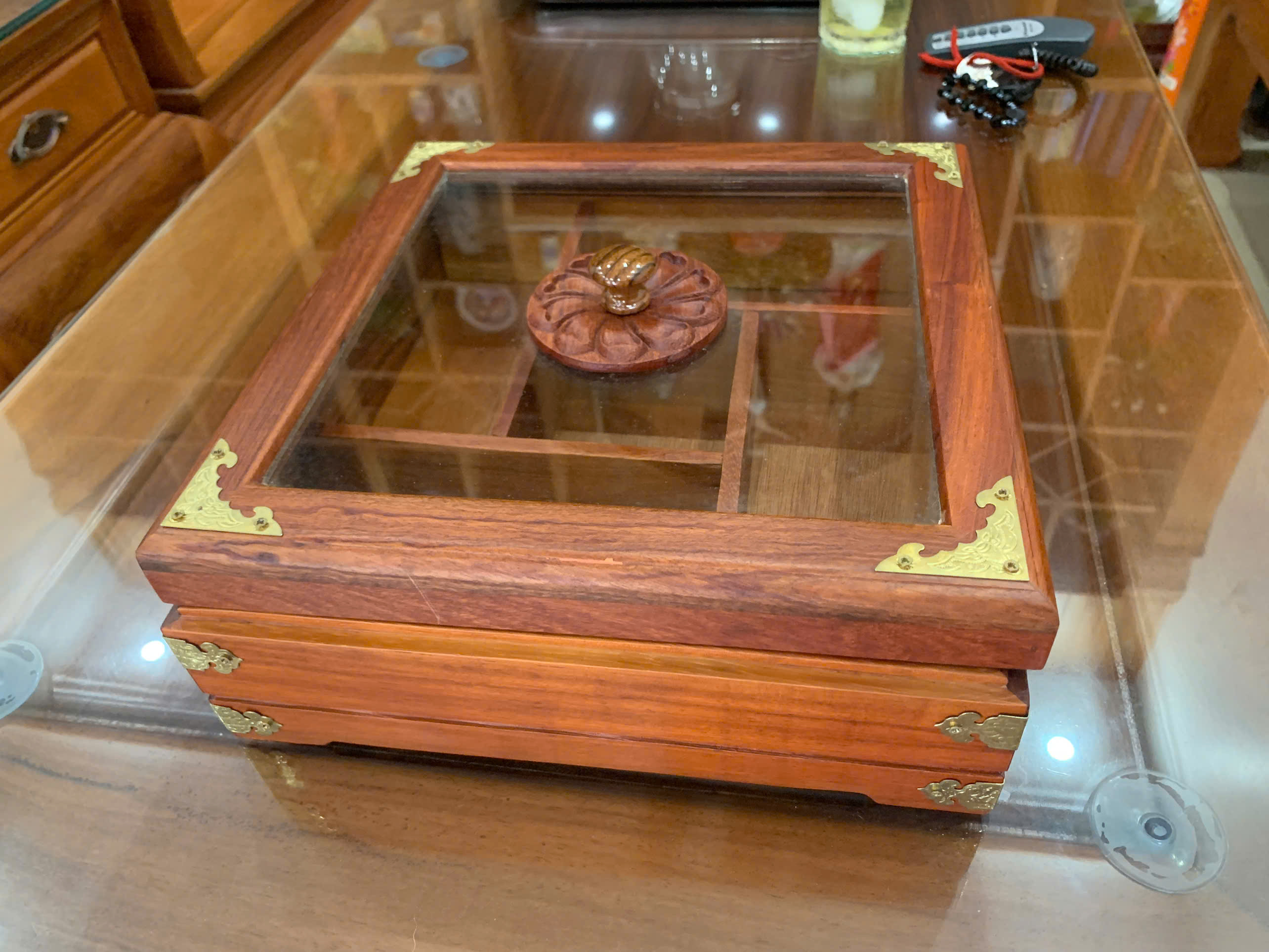 -Chất liệu: gỗ hương -Kích thước: Khay vuông, 27X27CMX8 -Ý nghĩa:Những ngày đầu năm, ai cũng muốn căn nhà của mình có chút gì đó mới mẻ và hấp dẫn hơn. Vậy nên, ngoài việc tự trang trí nhà riêng, bạn cũng nên mua quà gì đó để biếu bạn bè, người thân. Việc chọn đồ vật thích hợp để trang trí trong dịp Tết không phải là điều dễ dàng. Nếu vẫn đang băn khoăn về vấn đề này, Khay Đựng Bánh Kẹo Gỗ Hương Tết chắc chắn sẽ là 1 gợi ý hay cho bạn. Không những ẩn chứa vẻ sang trọng, quý phái, hộp mứt còn mang lại giá trị sử dụng cực kỳ thiết thực.