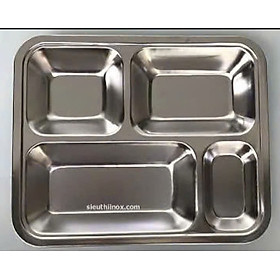 Khay cơm inox 4 ngăn SUS 304 được sản xuất trên dây truyền công nghệ hiện đại bằng phương pháp dập thủy lực, sản phẩm bóng đẹp, không từ tính, không bị hoen ố, an